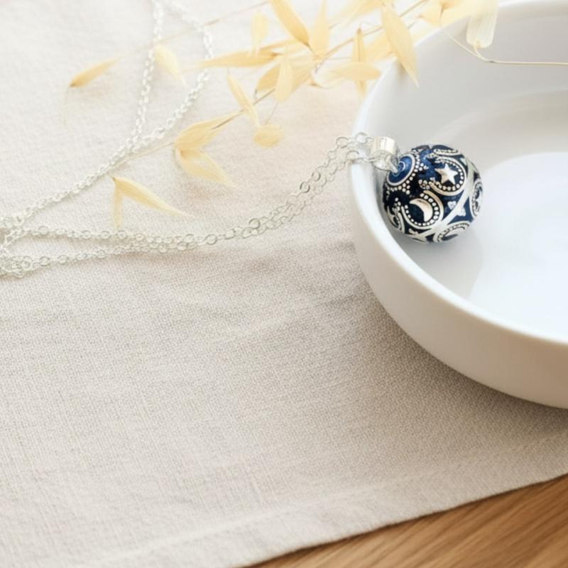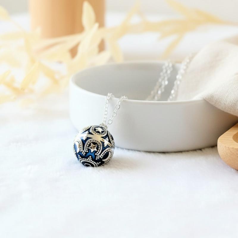 Bola de grossesse Argent & Bleu - Lune & Étoile - Inaya