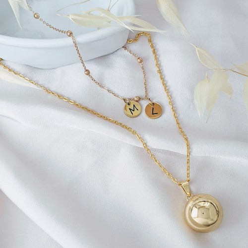 Bola de Grossesse Or Eden avec Initiales & Double Collier