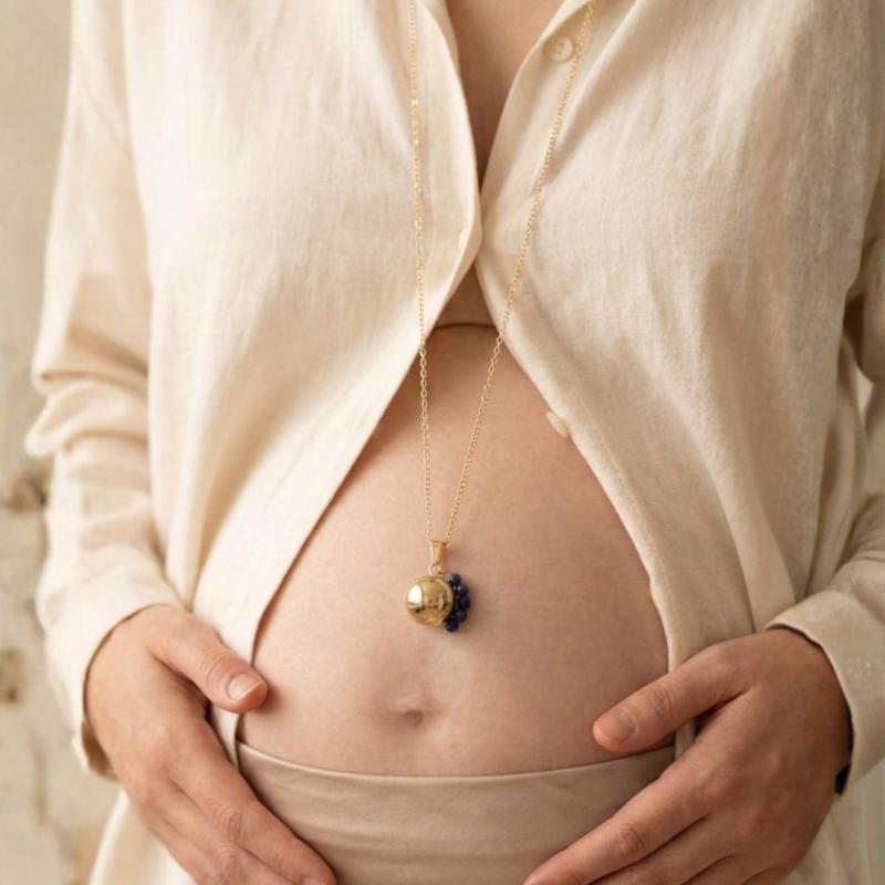 Bola de grossesse en plaqué Or avec perles en pierre naturelle Lapis Lazuli