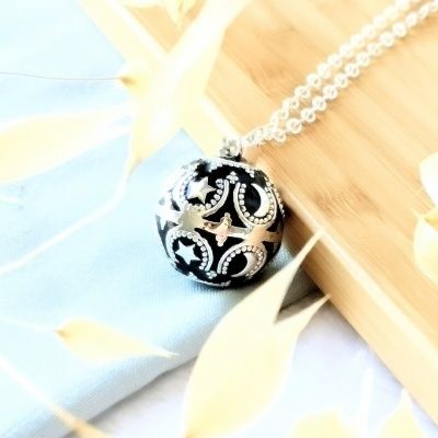 Bola de grossesse Argent & Noir - Lune & Étoile - Inaya